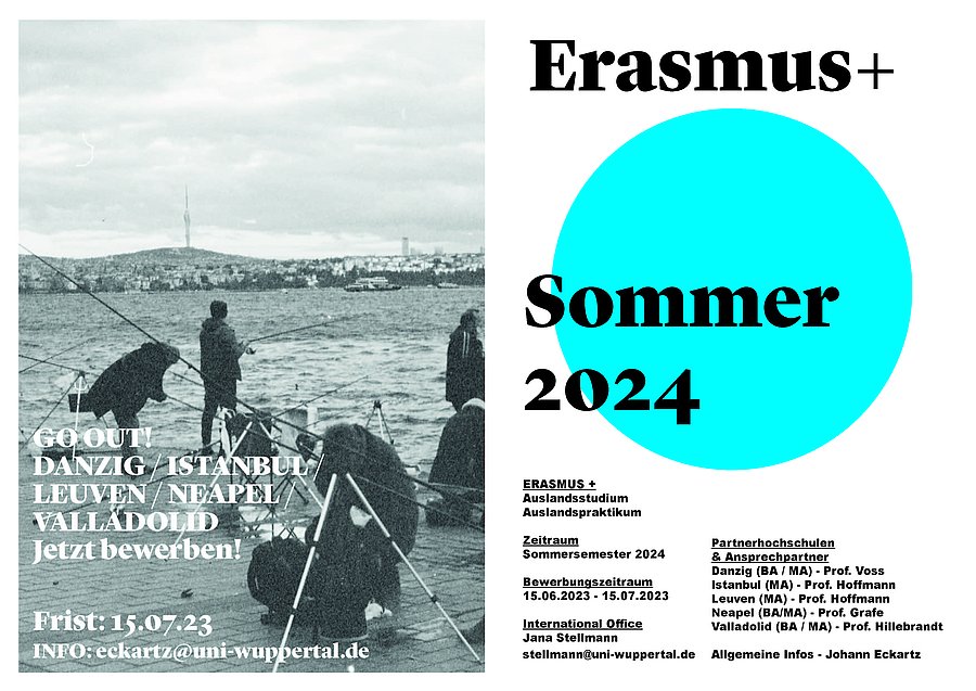 Bewerbt euch noch bis zum 15.7.23 für einen Erasmusaufenthalt an unseren Partnerhochschulen in Europa im Sommersemester 2024.