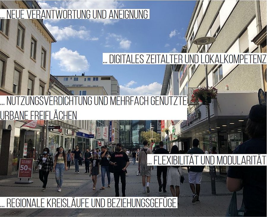 „Die Entwicklung innovativer, ökonomischer, nachhaltiger Geschäftsmodelle sowie ökologische und architektonische Lösungsansätze sind notwendiger denn je“, führt Herr Prof. Klaus Overmeyer vom Lehrstuhl für Landschaftsarchitektur weiter fort. Aus der Erarbeitung der Studierenden lasse sich ableiten, dass die Bedeutung einer neuen Verantwortung und eine Veränderung von Handelslagen und dessen Flächen im digitalen Zeitalter, auch bedingt durch den stark wachsenden Onlinehandel, für den stationären Handel wichtiger ist, denn je.