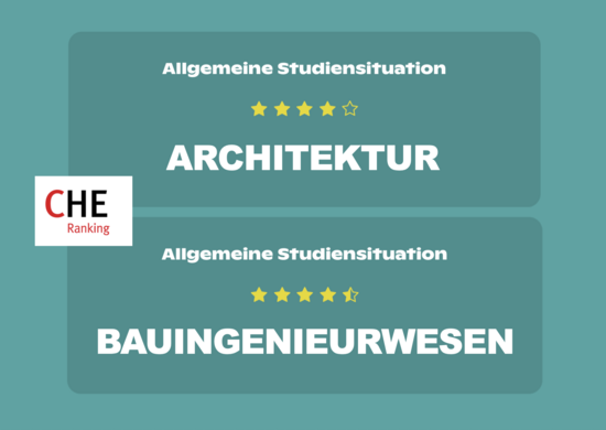 Sehr gute Bewertungen im CHE-Ranking 2025/26 für unsere Studiengänge Architektur und Bauingenieurwesen