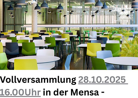 Der Dekan Prof. Christoph Grafe lädt am Dienstag, den 28. Oktober 2025, um 16:00 Uhr zu einer Vollversammlung in die Räumlichkeiten der Mensa am…