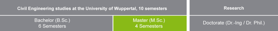 The master's degree is a full professional qualification with which all activities of civil engineering (comparable to the qualification to the previous Diplomingenieur (Dipl.-Ing. )) can be exercised. The master's program is classified as a consecutive program because it continues the content of the accredited bachelor's program "Civil Engineering Civil Engineering" (B.Sc.) in the Department D of the University of Wuppertal, deepens and expands interdisciplinary.