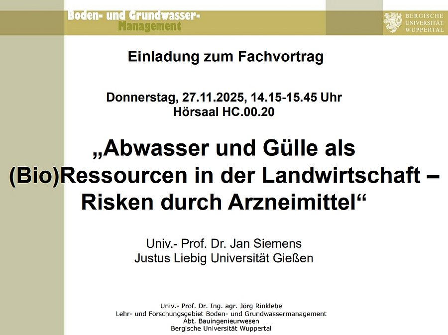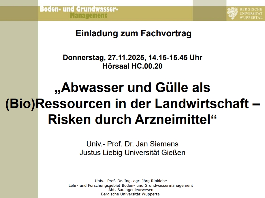 Fachvortrag „Abwasser und Gülle als (Bio)Ressourcen in der Landwirtschaft – Risken durch Arzneimittel“ - Univ.- Prof. Dr. Jan Siemens